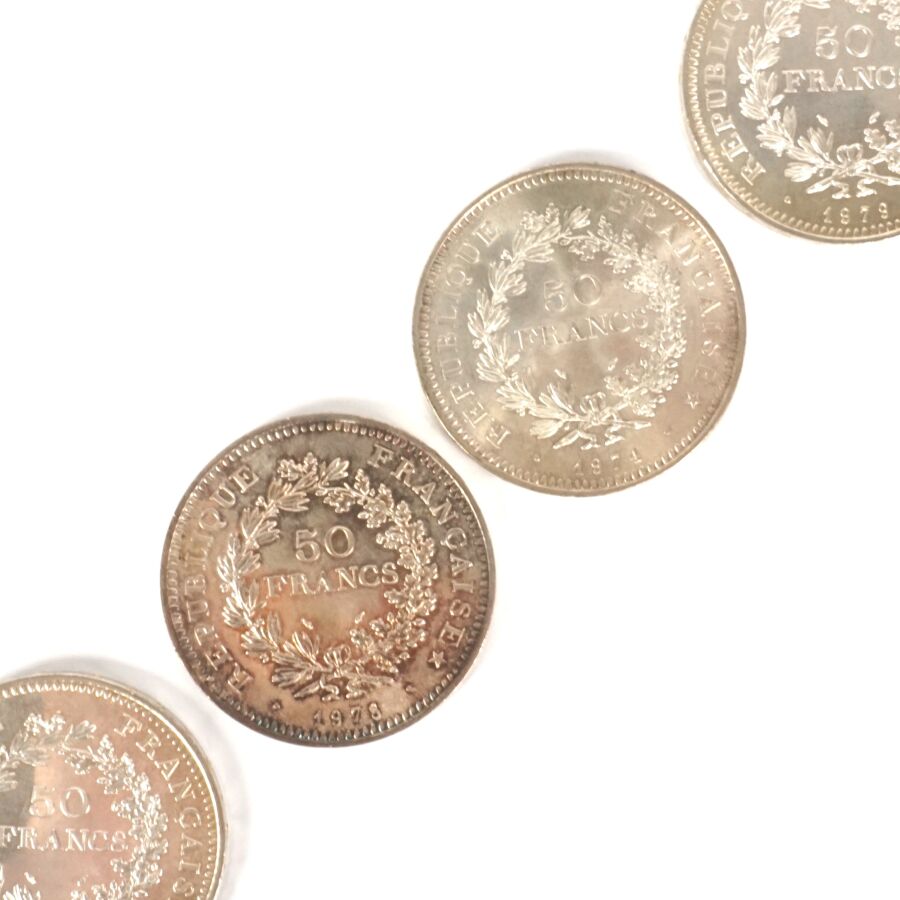 4 x 50 Francs argent, Hercule, 1 x 1974, 1 x 1978 et 2 x 1979, Poids brut : 120.4 g environ.