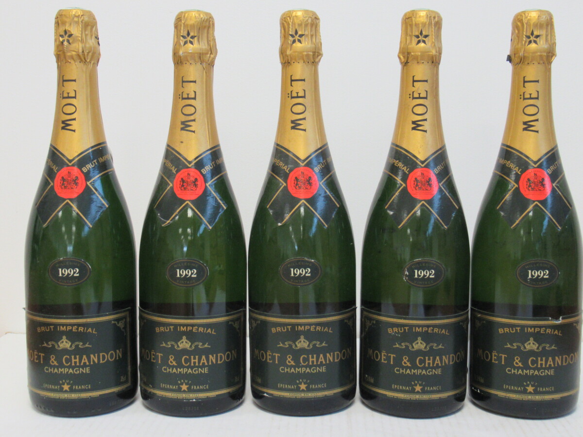 5 Blles Champagne MOËT & CHANDON Brut Impérial 1992 Et. bonnes. N : 1 cm.