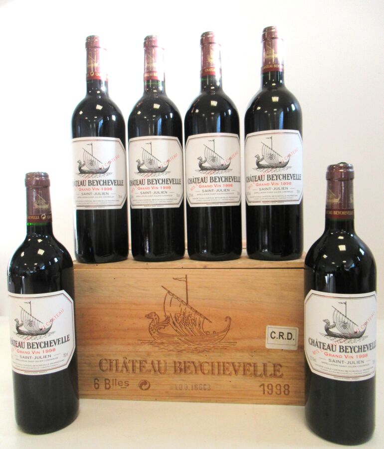 6 Blles CH. BEYCHEVELLE St Julien GCC 1998 Présentation et niveaux impeccables. CBO.