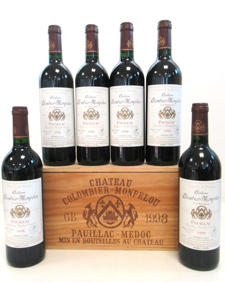 6 Blles CH. COLOMBIER MONPELOU Pauillac CB 1998 Et. impeccables. N : mi goulot. CBO.