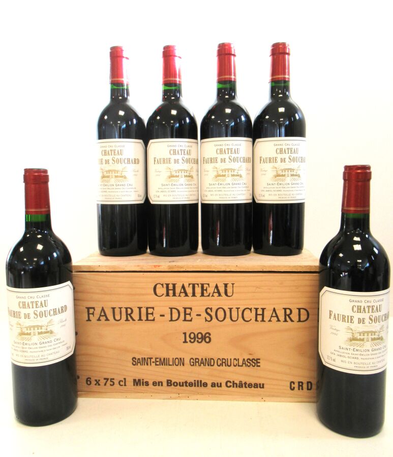 6 Blles CH. FAURIE DE SOUCHARD St Emilion GCC 1996 Et. impeccables. N : mi goulot. CBO.