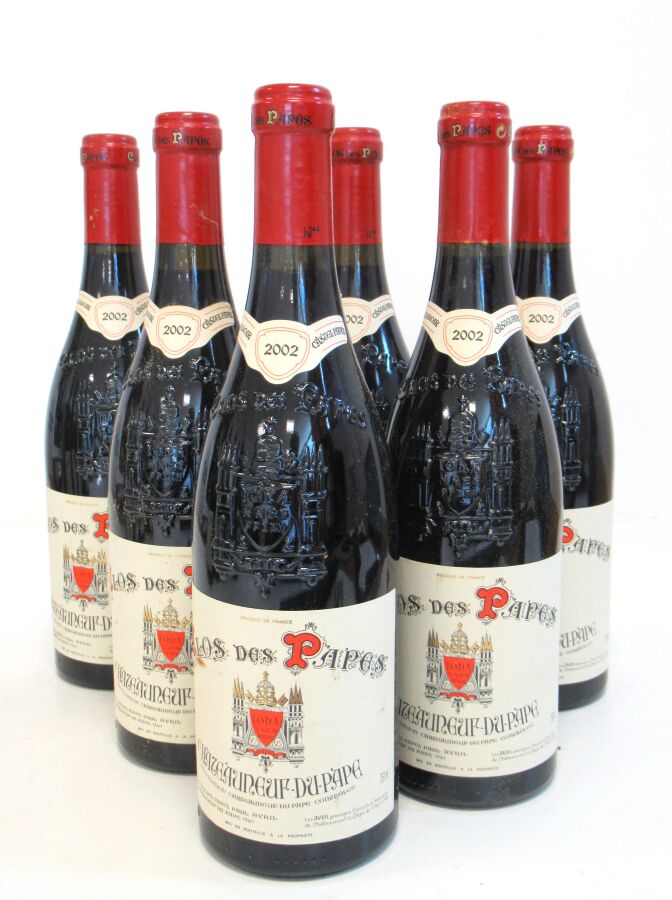6 Blles CHATEAUNEUF DU PAPE Clos des Papes mise P. Avril 2002 Et. à peine tachées. N : 0,5 cm.
