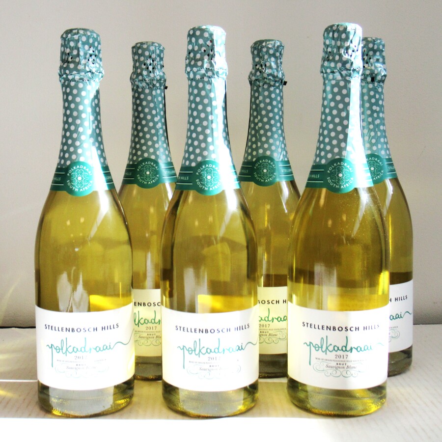 6 Blles POLKADRAAI (Afrique du Sud) mise Stellenbosch Hills 2017 Sauvignon blanc Brut pétillant. Carton d'origine NI.