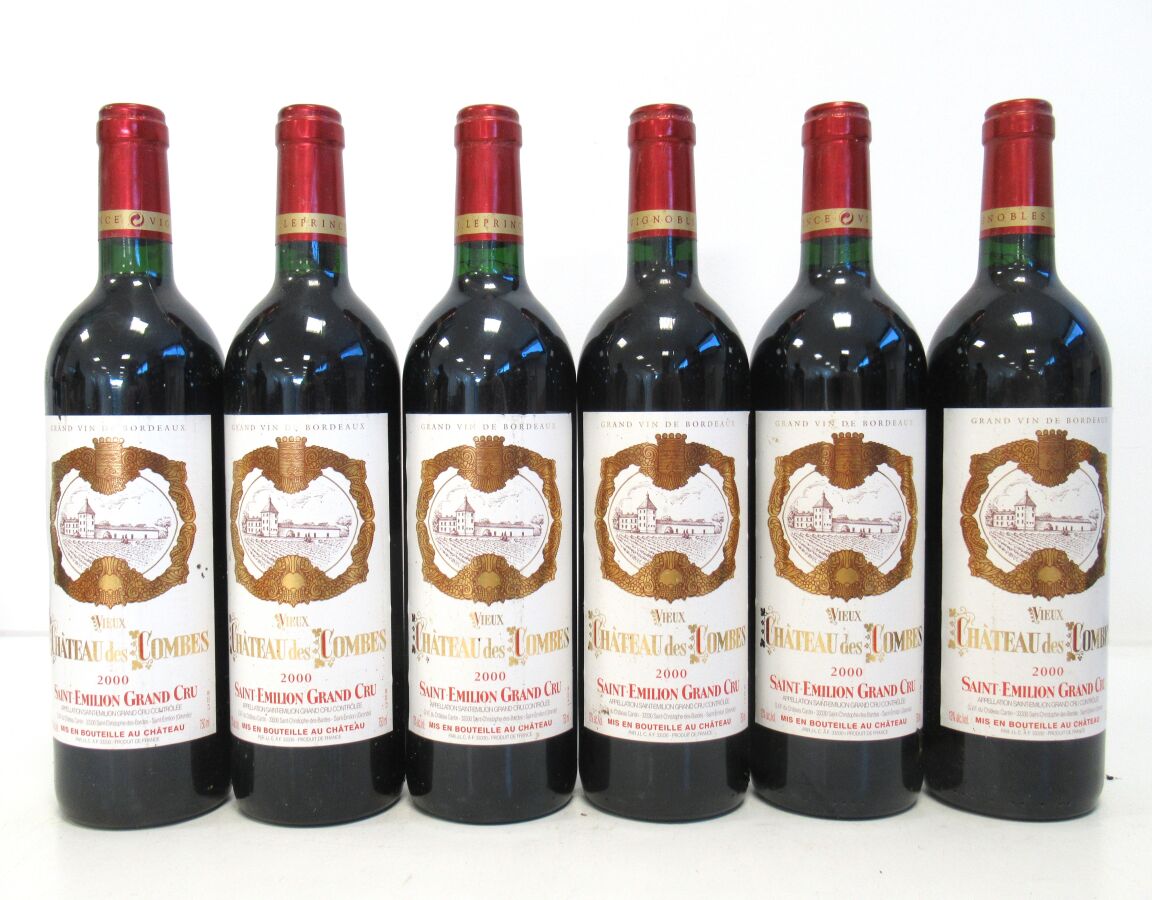 6 Blles VIEUX CHÂTEAU DES COMBES St Emilion GC 2000 Et. un peu tachées. N : bas goulot.