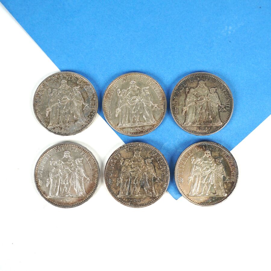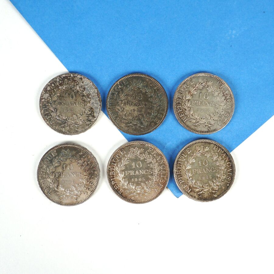 6 x 10 Francs argent Hercule 1965, Poids brut : 150 g environ.