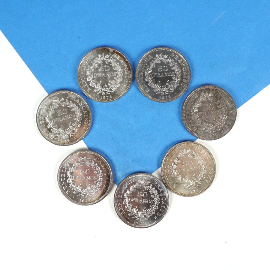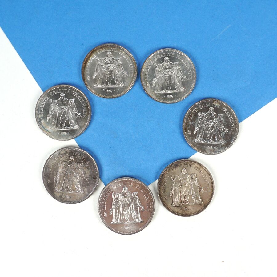 7 x 50 Francs argent Hercule, Poids brut : 209.9 g environ.