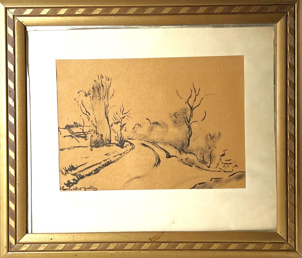 A REPRENDRE Charles Albert GUELDRY (1884-1973), "Paysage au hameau", encre sur papier, signée en bas à gauche, 17 x 24 cm.