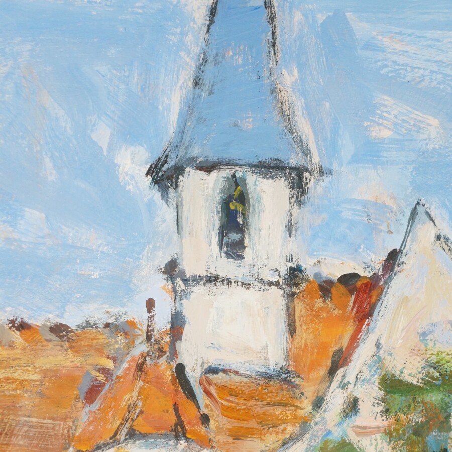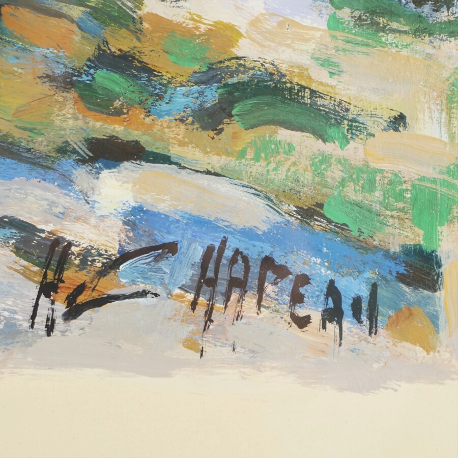 A REPRENDRE Henri CHAPEAU (XXe), "Place de l'Eglise", gouache sur papier, signée en bas à droite, 34 x 46 cm.