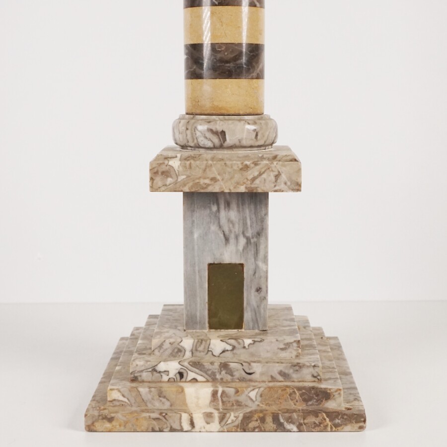 A REPRENDRE Phare en camaïeu de marbres gris, beige, bleu et gris foncé, H. 46 cm (élément manquant au sommet, petites égrenures).