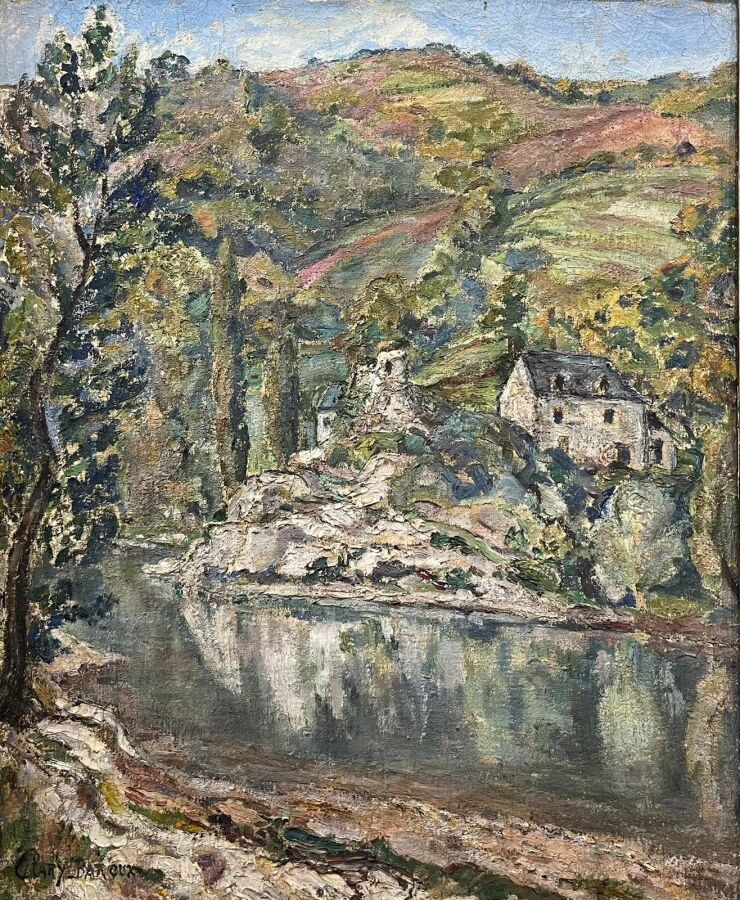 Adolphe CLARY-BAROUX (1865-1933), "L'Automne à Entreygue (Aveyron)" octobre 1929, huile sur toile, signée en bas à gauche et datée au dos, 61 x 51 cm.