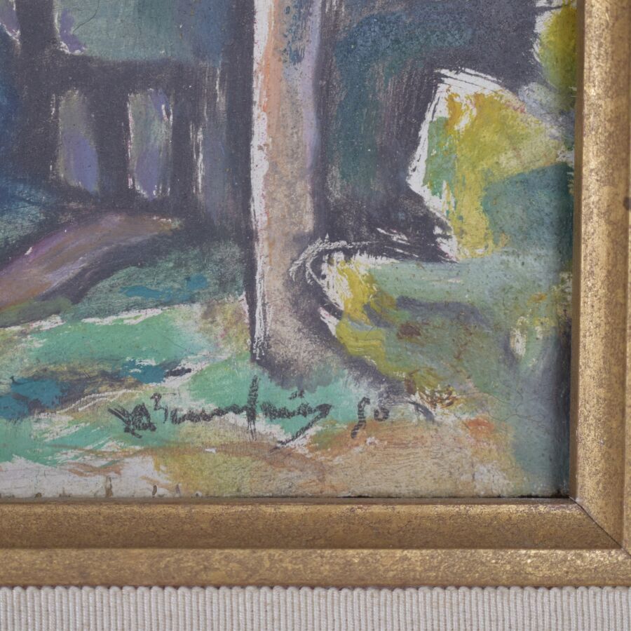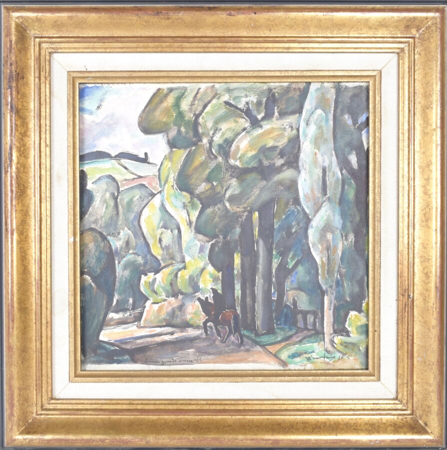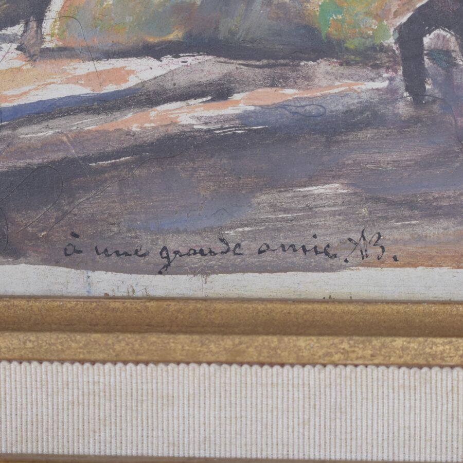 Adolphe Marie BEAUFRERE (1876-1960), "Kéblin, avec le cavalier", huile sur panneau signée en bas à droite, dédicacée en bas à gauche "A une grande amie - AB", contresignée au dos et titrée, 29 x 29 cm.