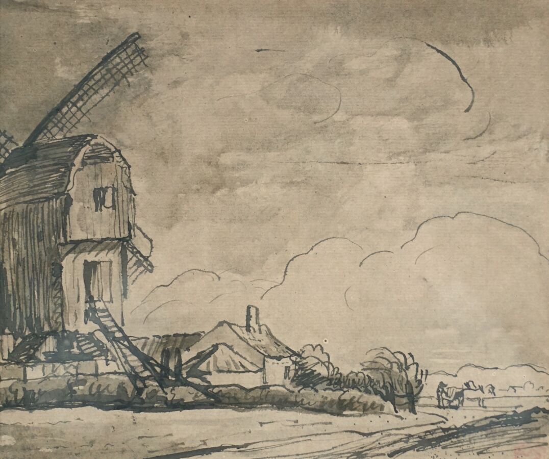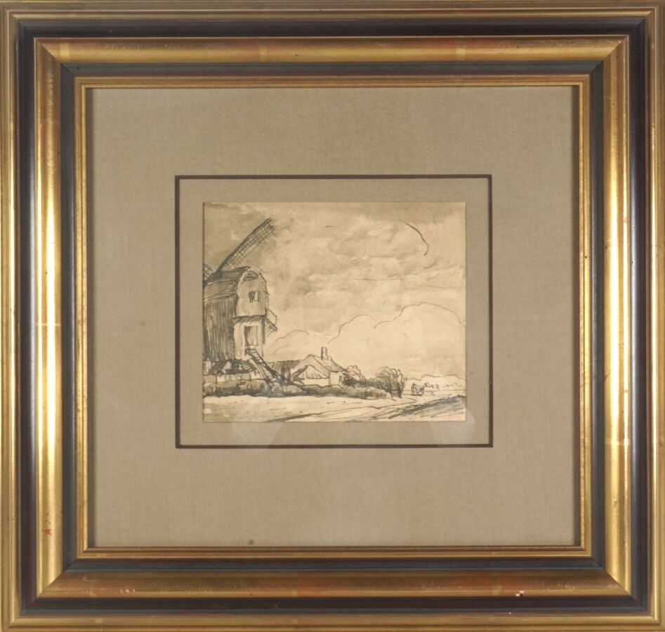Adolphe Marie BEAUFRERE (1876-1960), "Le moulin", encre sur papier, cachet de l'atelier de l'artiste en bas à droite, 17.5 x 21 cm (à vue).