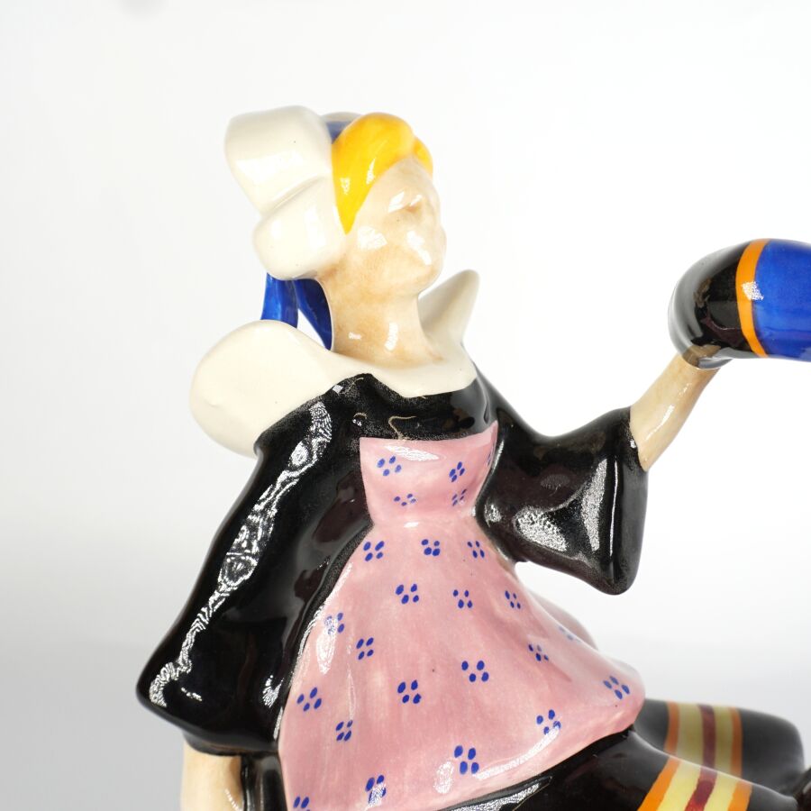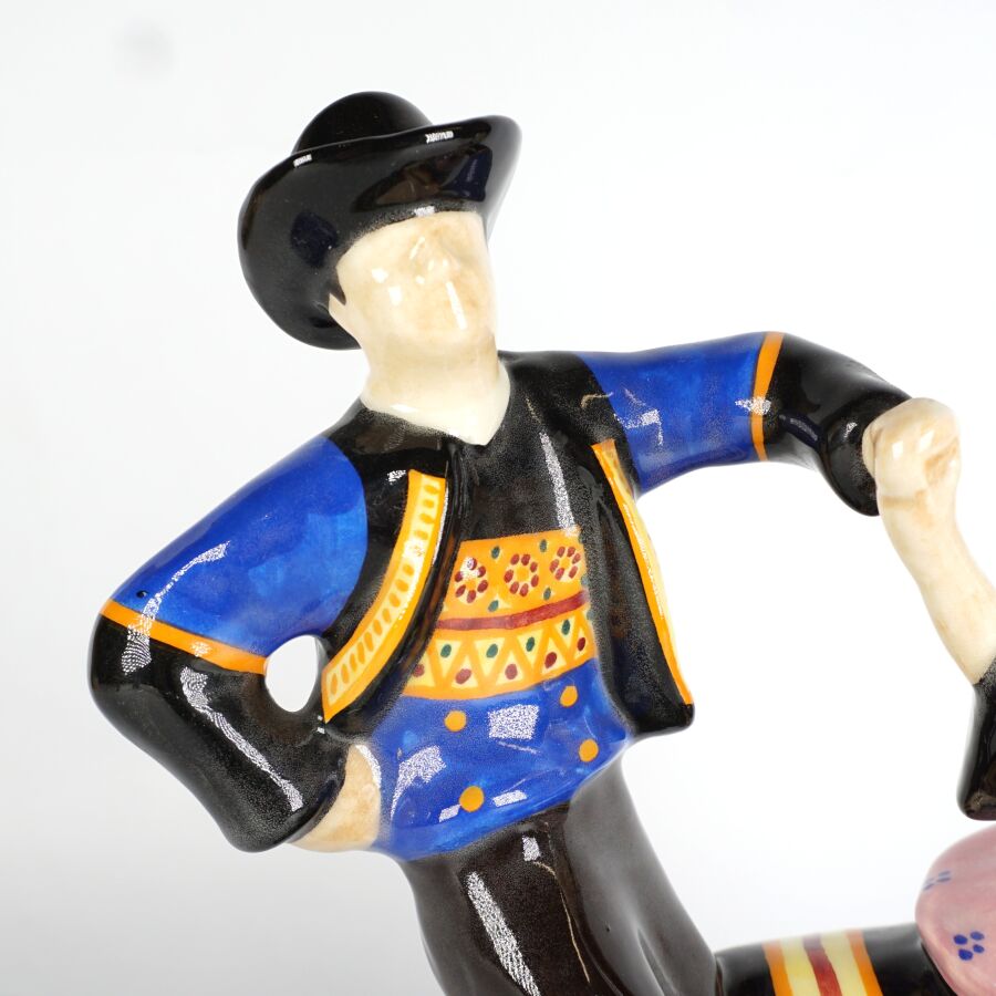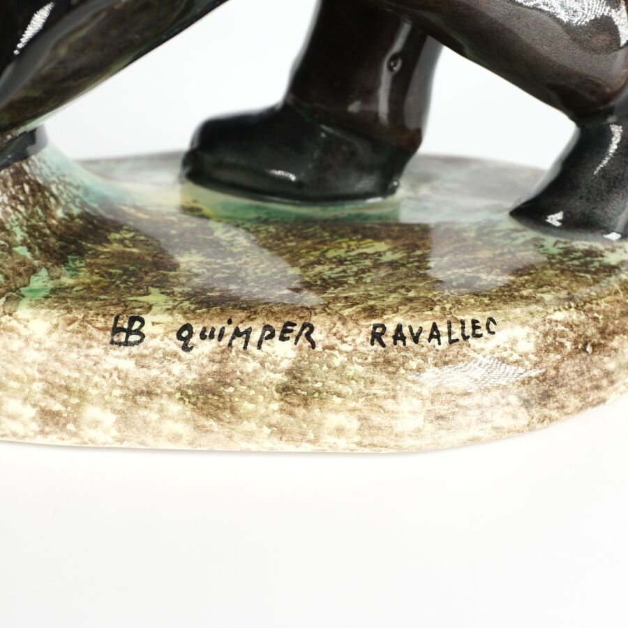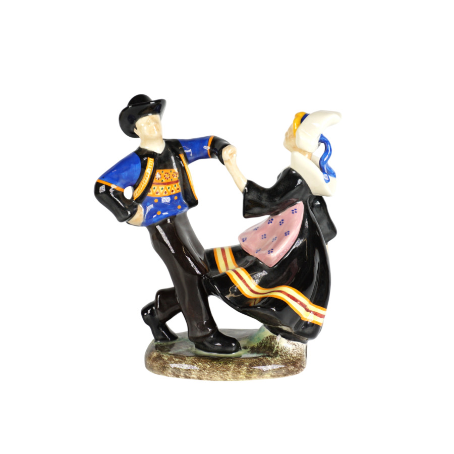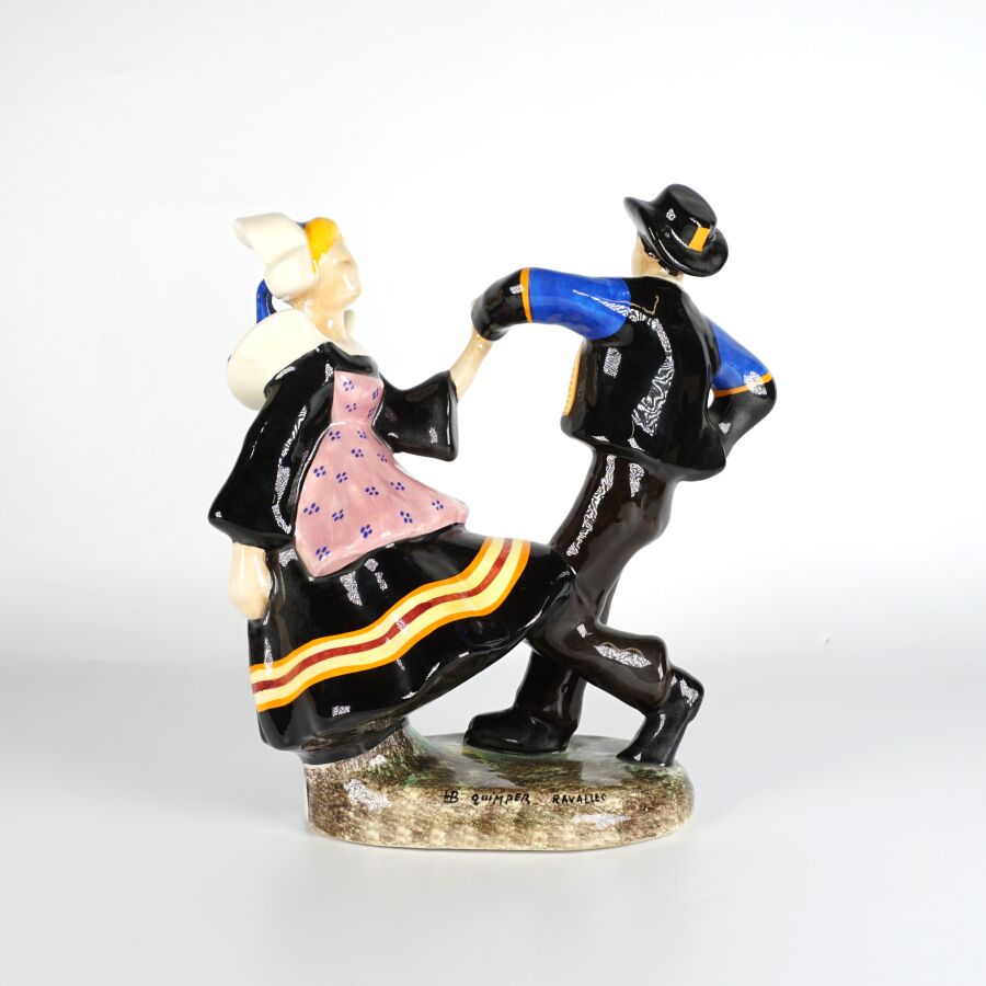Adrien RAVALLEC (1909-1993), "Couple de danseur Fouesnantais", groupe en faïence émaillée polychrome, signé à la base, H. 25,5 cm.