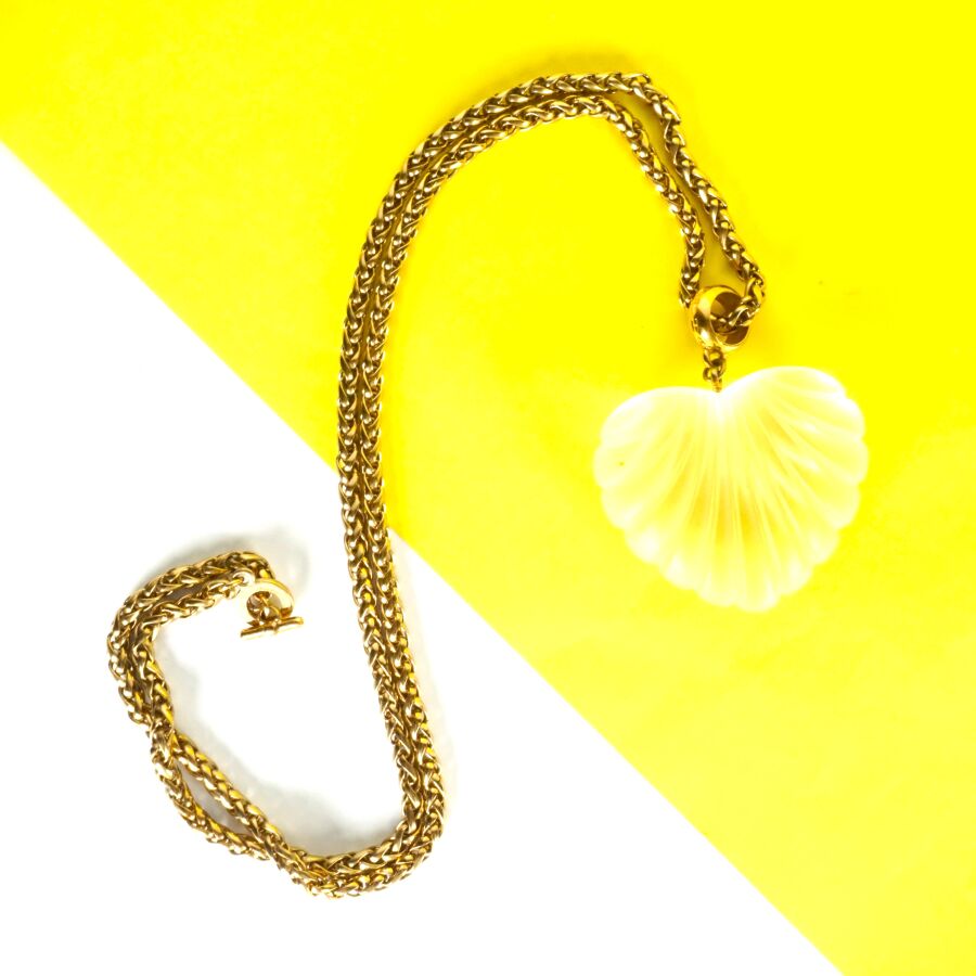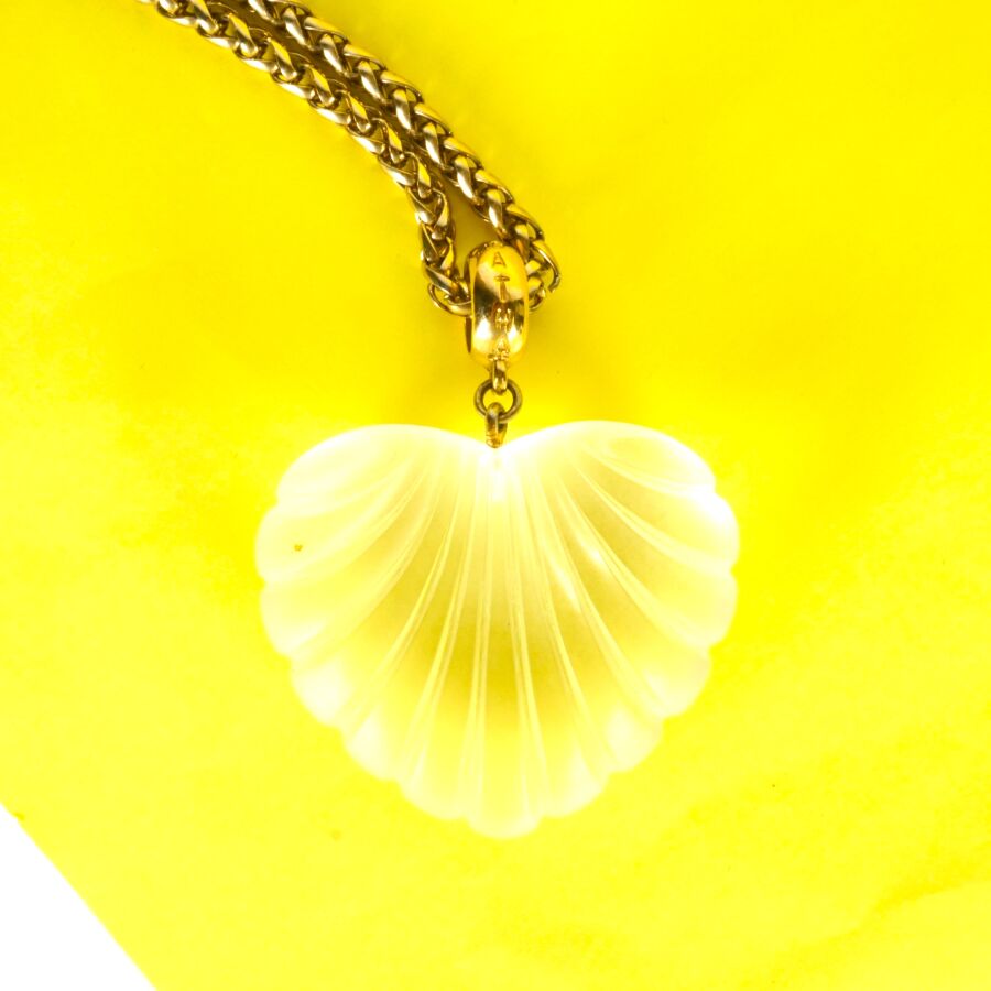 AGATHA : Sautoir en métal doré retenant un pendentif moulé à motif d'un coeur, signé sur le fermoir, L. 82 cm. Dim. Pendentif (hors bélière) : 5 x 5.8 cm. H. Avec bélière : 7.1 cm.