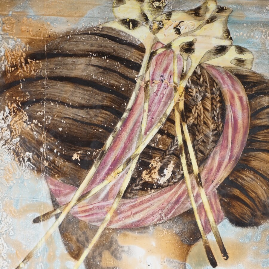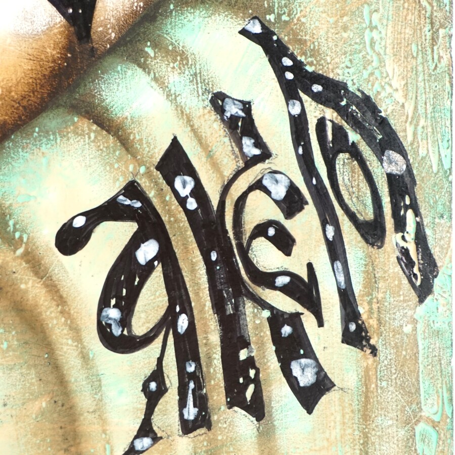 AKELO (XXe), "L'esprit du métissage", enduit, huile et acrylique sur bois, signé en bas à droite, 80 x 40 cm.