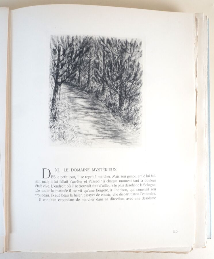 ALAIN-FOURNIER - Le Grand Meaulnes - Paris ; Éditions Émile-Paul Frères, 1946 - 1 volume In-folio en feuilles sous couverture titrée au 1er plat, chemise titrée au dos et emboîtage - 46 eaux-fortes originales in texte en noir de Jean Frélaut - Très bon exemplaire, numéroté sur vélin de Lana (n°59 sur les 225) avec signature autographe de Jean Frélaut à la justification.