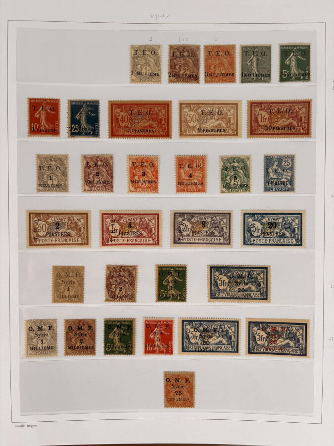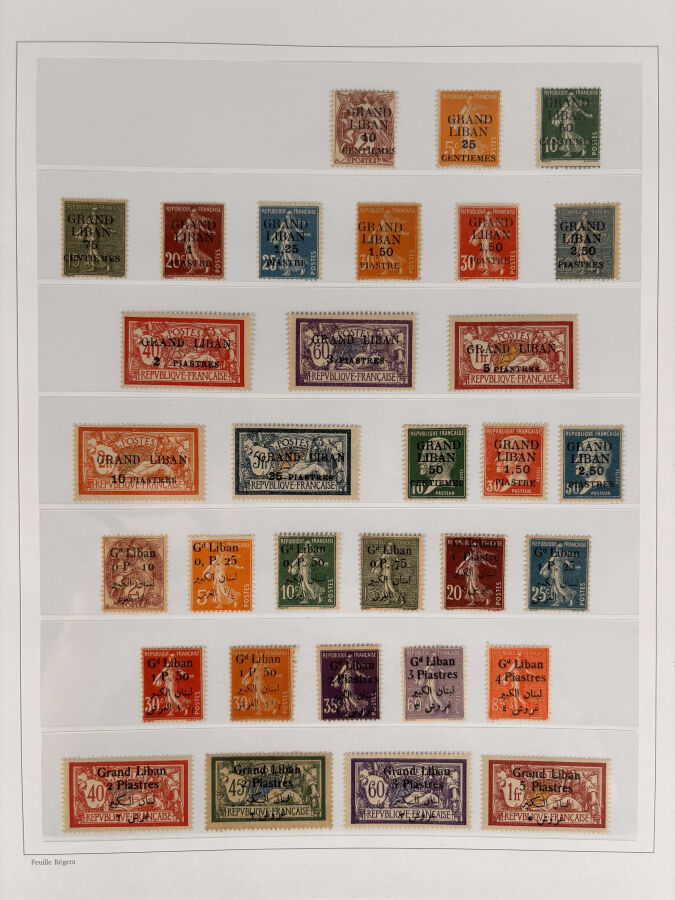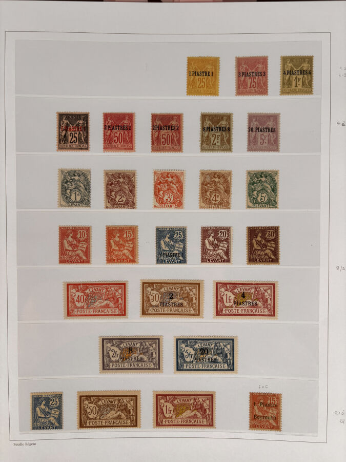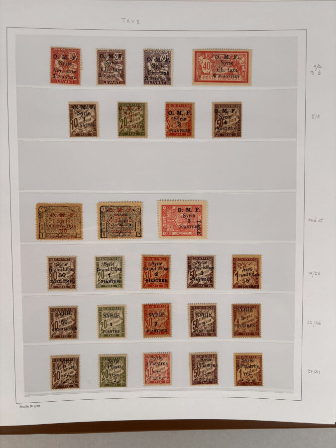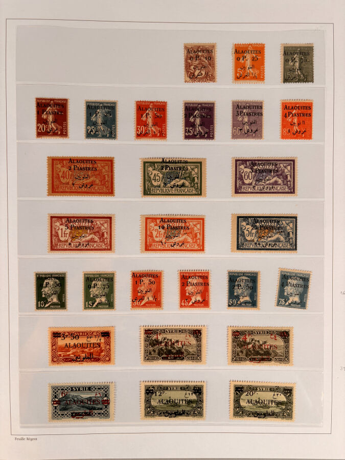 ALAOUITES - ALEXANDRETTE - CASTELLORIZO - CAVALLE - CILICIE - CRETE - DEDEAGH - GRAND LIBAN - LEVANT - PORT LAGOS - ROUAD - SYRIE - VATHY: En album YVERT, belle collection de TP N**, N*, des bonnes valeurs, quelques fac-similés, cote importante.