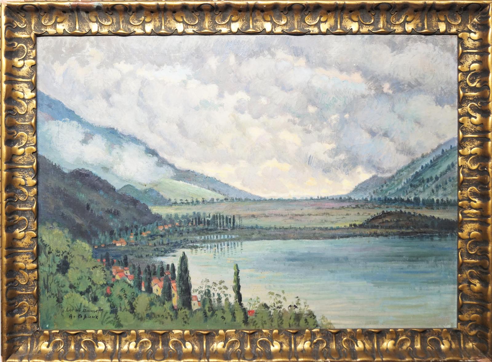 Albert COPIEUX (1885-1956), "Lac du Bourget", huile sur toile signée et titrée en bas à gauche, 75 x 105 cm (quelques petites taches, craquelures).