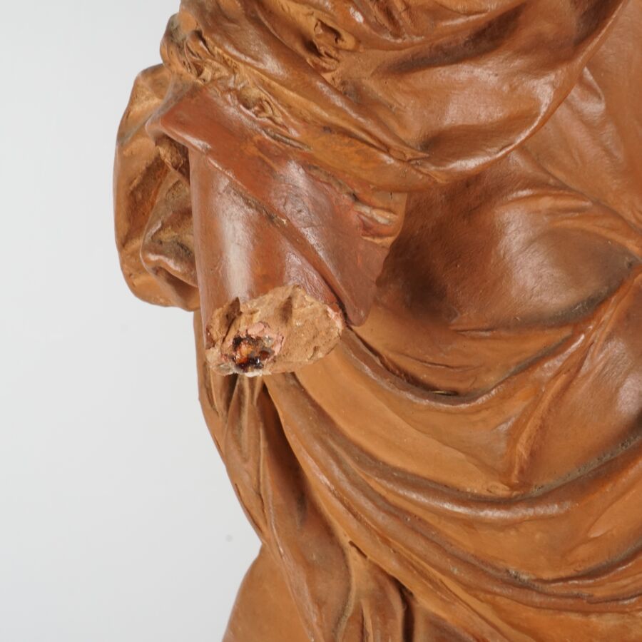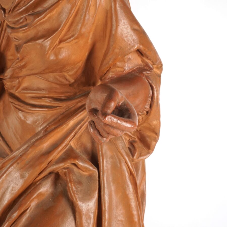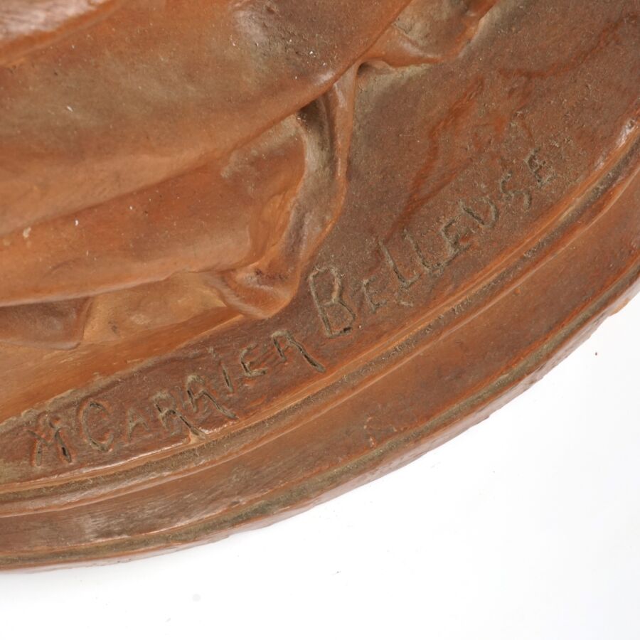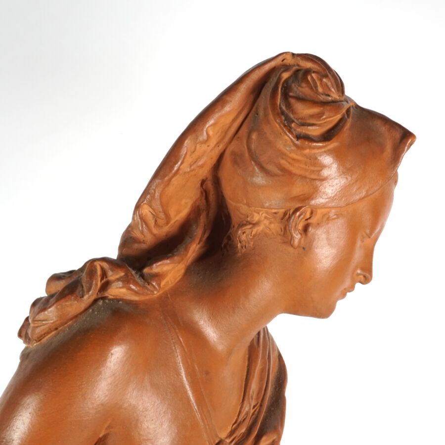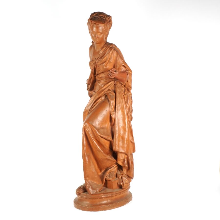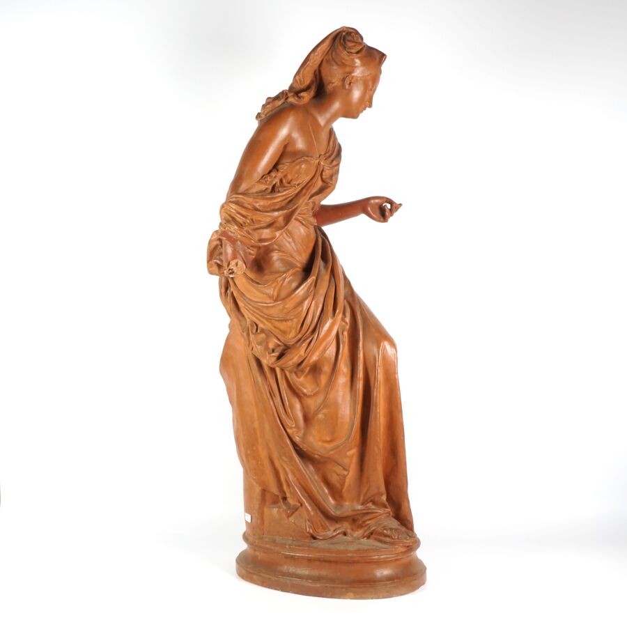 Albert Ernest CARRIER-BELLEUSE (1824-1887), "Femme au drapé", sculpture en terre cuite patinée, signature en creux sur la base, H. 80 cm (une main accidentée, petites égrenures).