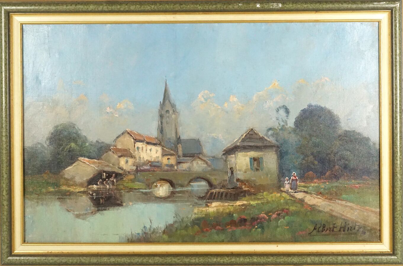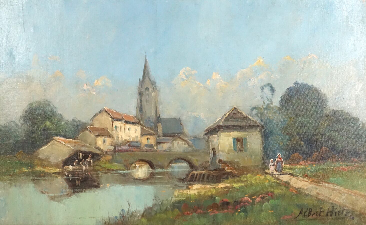 Albert HIRTZ (1898-1976), "Bretonne près du lavoir", huile sur toile signée en bas à droite, 37.8 x 61 cm.