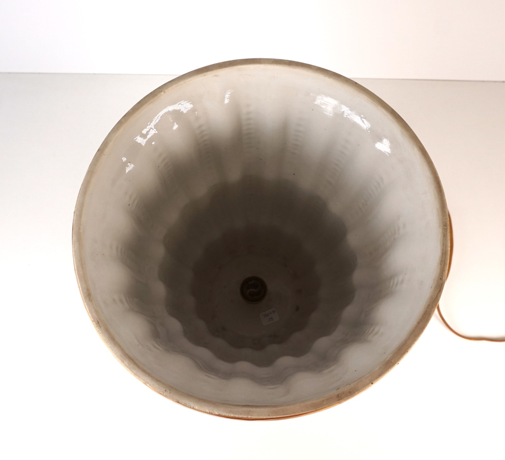 Albert LAURENT : Vase éclairant en porcelaine "Les perles", signé au-dessous, D. 29 cm, H. 34 cm.