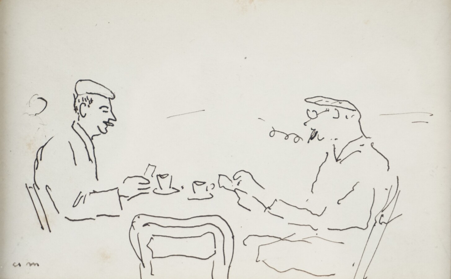 Albert MARQUET (1875-1947), "Au café", dessin à l'encre sur papier, signée du monogramme de l'artiste en bas à gauche, 8 x 13 cm (à vue).