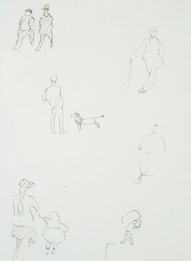 Albert MARQUET (1875-1947), "Etude de personnages", dessin à l'encre brune signé du tampon en bas à gauche, 26 x 19.5 cm (quelques traces de pliures).