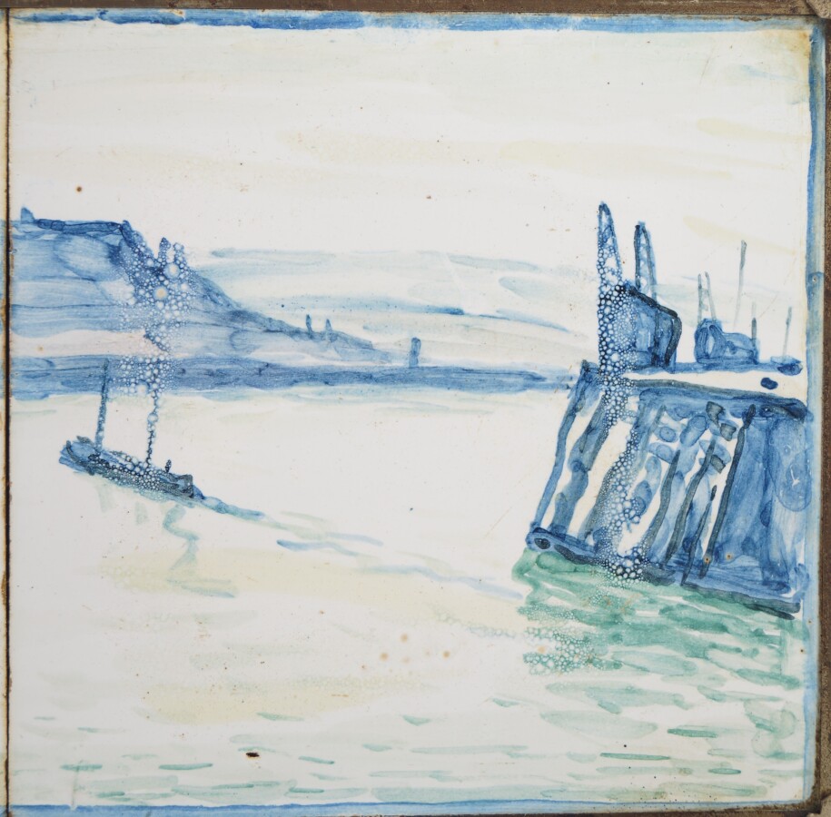 Albert MARQUET (1875-1947), "Vue de port", deux carreaux en céramique monogrammés en bas à gauche, 14.5 x 30 cm.
