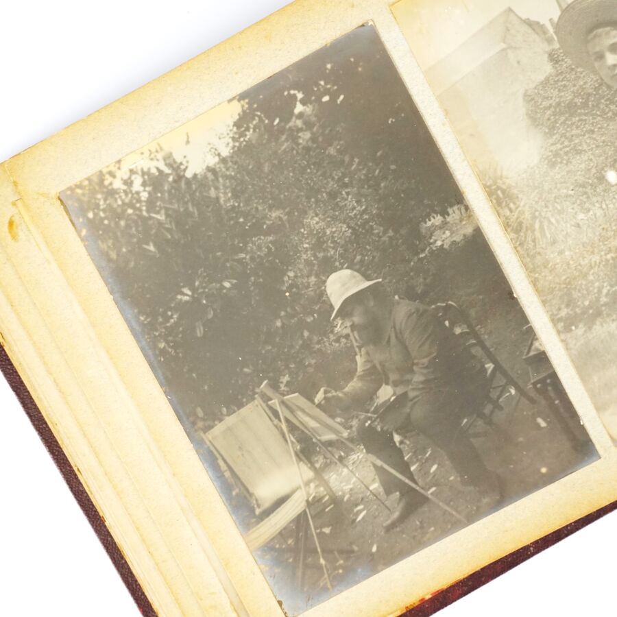 Album de photographies, tirages contrecollées contenant notamment une photographie de Camille PISSARRO (1830-1903) à son chevalet (usures et insolation).