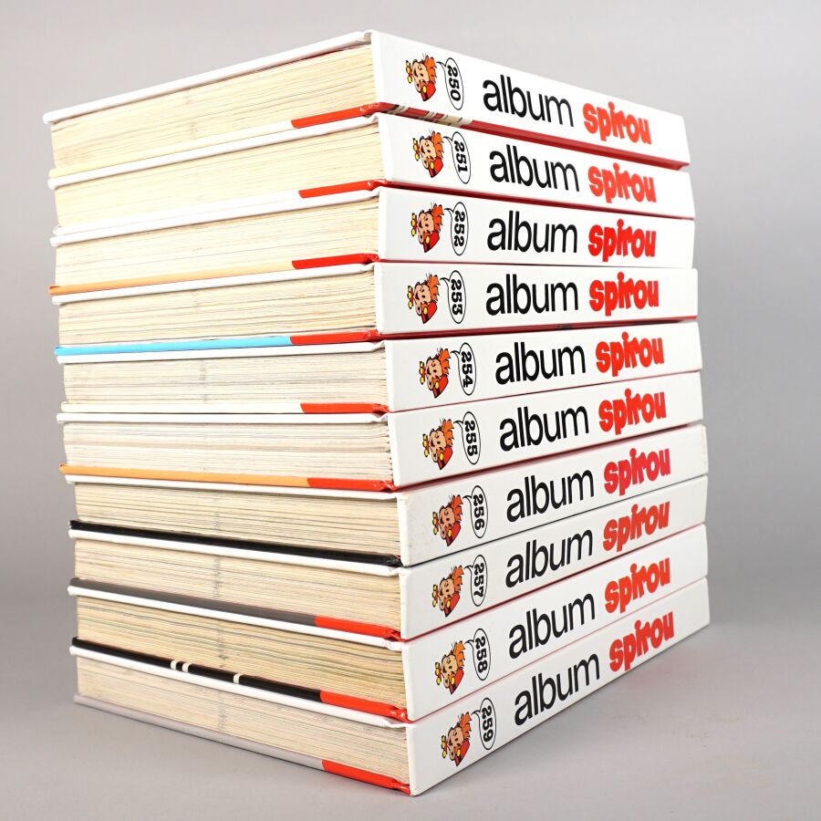 ALBUMS DU JOURNAL SPIROU, éd. DUPUIS, reliure SPIROU PÉRIODIQUE : Ensemble de 10 albums comprenant les numéros 250 à 259. Bon état.