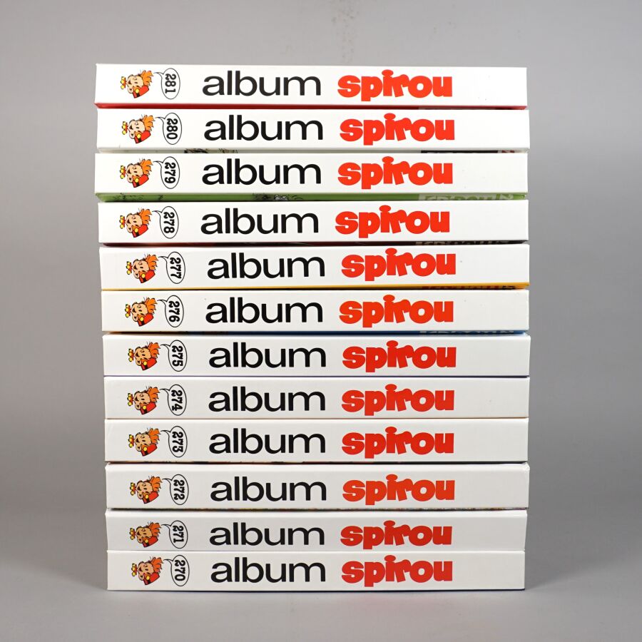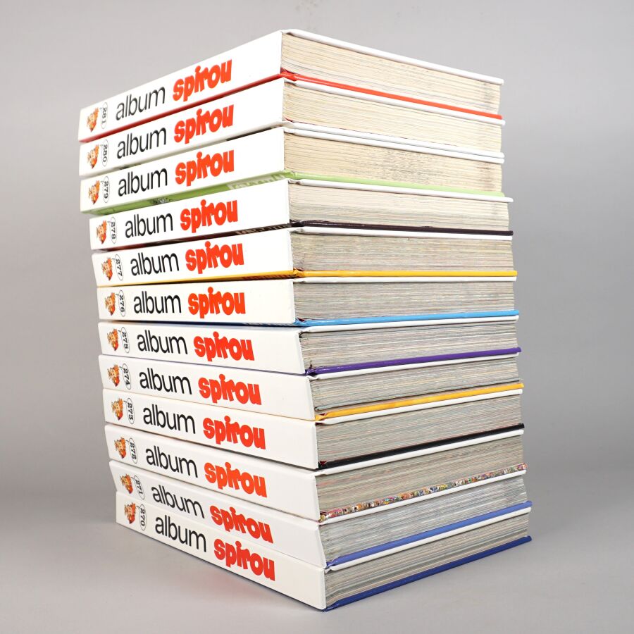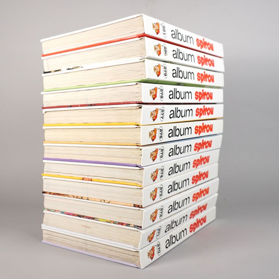 ALBUMS DU JOURNAL SPIROU, éd. DUPUIS, reliure SPIROU PÉRIODIQUE : Ensemble de 12 albums comprenant les numéros 270 à 281. Bon état.