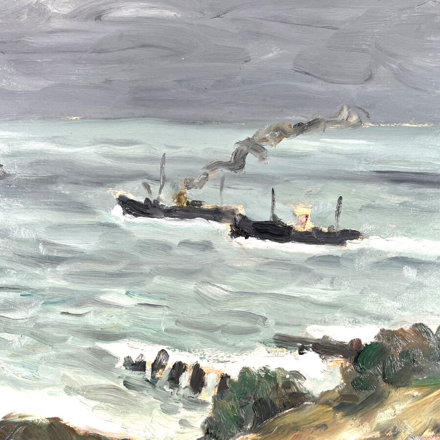 Alex BERDAL (1945), "Bateaux à vapeur", huile sur panneau signée en bas à droite, 49 x 60 cm (à vue) (trous dans les coins).
