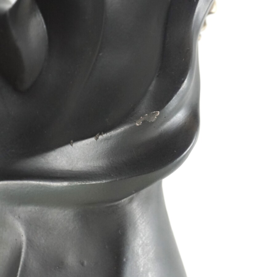 Alexander DANEL (1940), "Femme au lévrier", groupe en plâtre patiné argent et noir, signé sur la terrasse, Austin Production, H. 69 cm (petits éclats, restauration au socle).