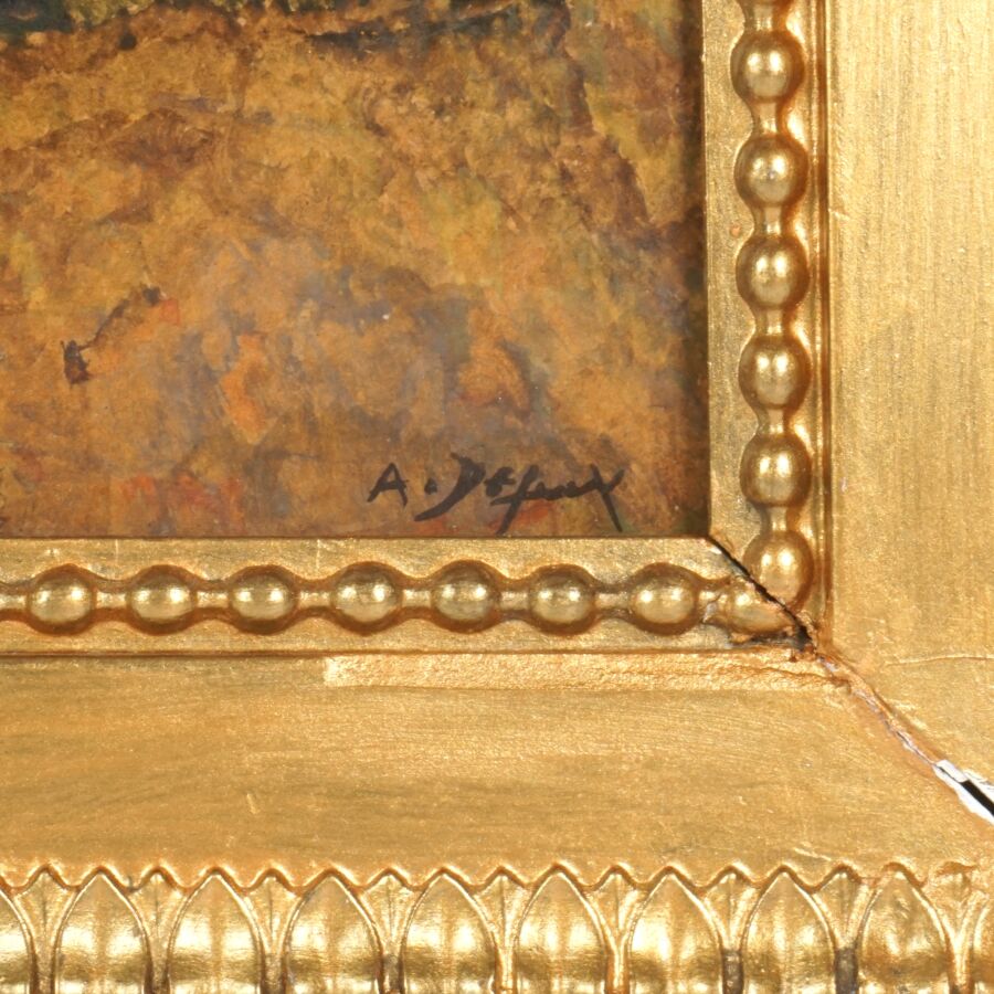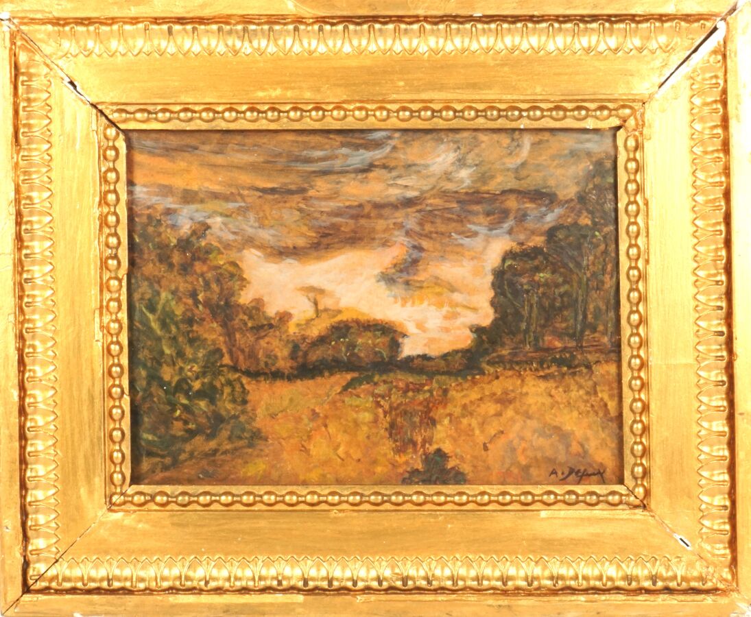 Alexandre DEFAUX (1826-1900), "Paysage", huile sur panneau, signée en bas à droite, 16,5 x 22 cm.