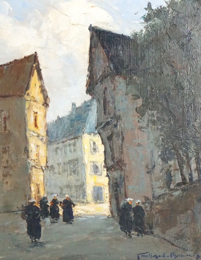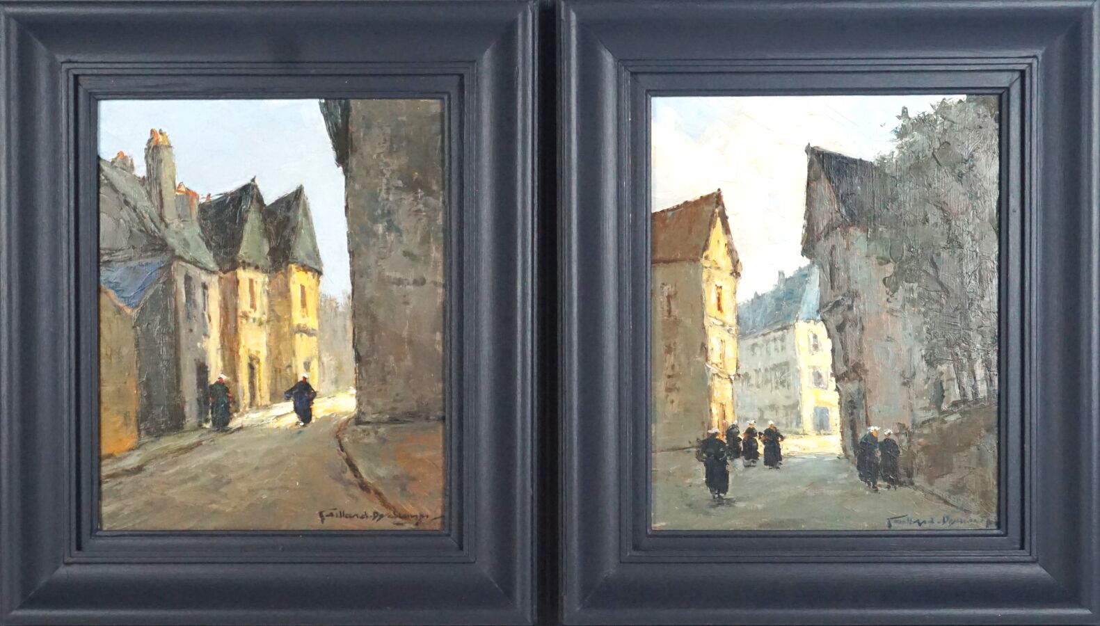 Alexandre Gabriel GAILLARD-DESCHAMPS (c.1903-1984), "Rues à Auray", deux huiles sur panneau formant un pendant, signées en bas à droite, 26.5 x 22 cm (chaque).