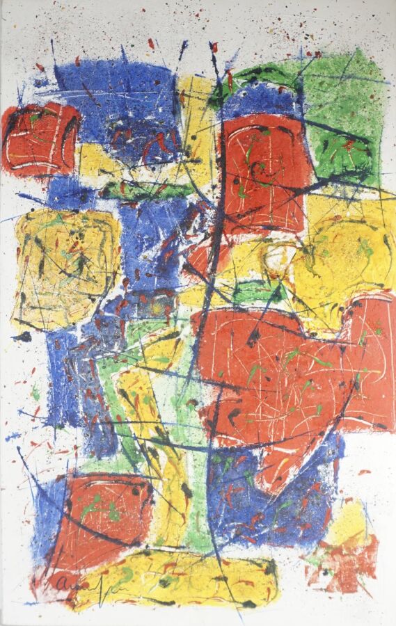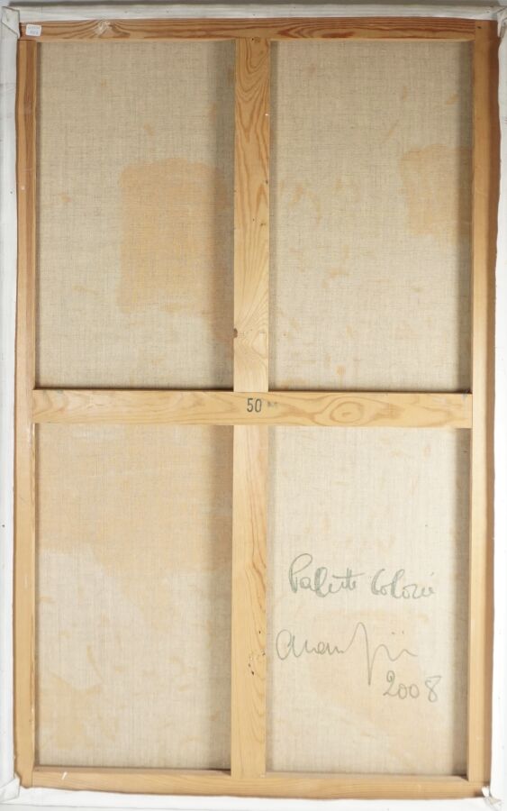 Alexandrine VAN-DUIJN (1953), "Palette colorée" 2008, huile sur toile signée en bas à gauche, titrée, datée et contresignée au dos, 116 x 73 cm.