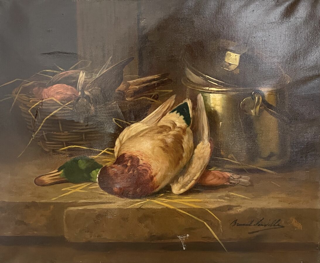 Alfred Arthur BRUNEL NEUVILLE (1852-1941), "Nature morte au canard", huile sur toile signée en bas à droite.