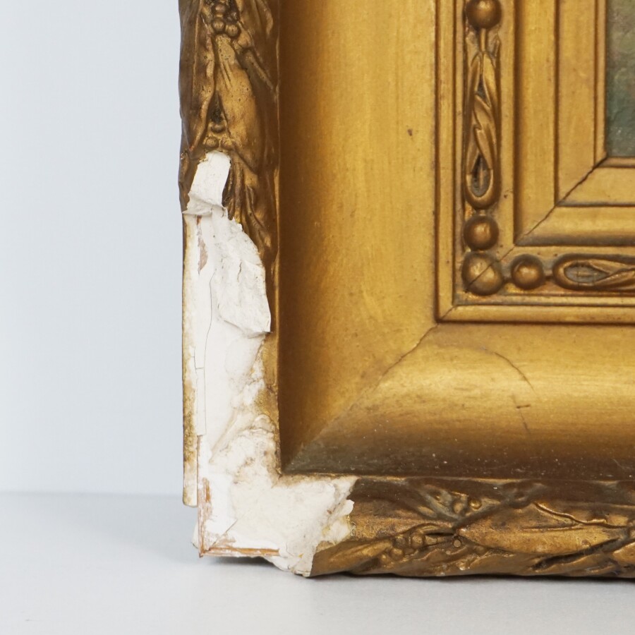 Alfred DESAINT (XIXe), "Le calvaire", huile sur toile signée en bas à droite, 39 x 56 cm (écaillures, manques au cadre).