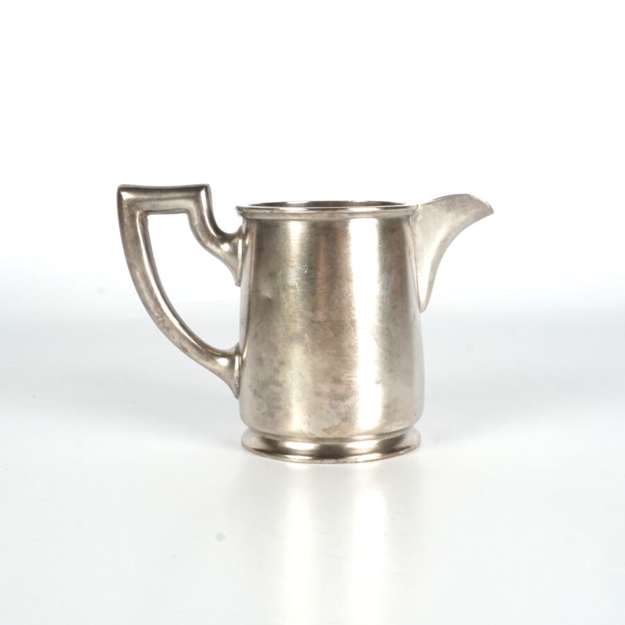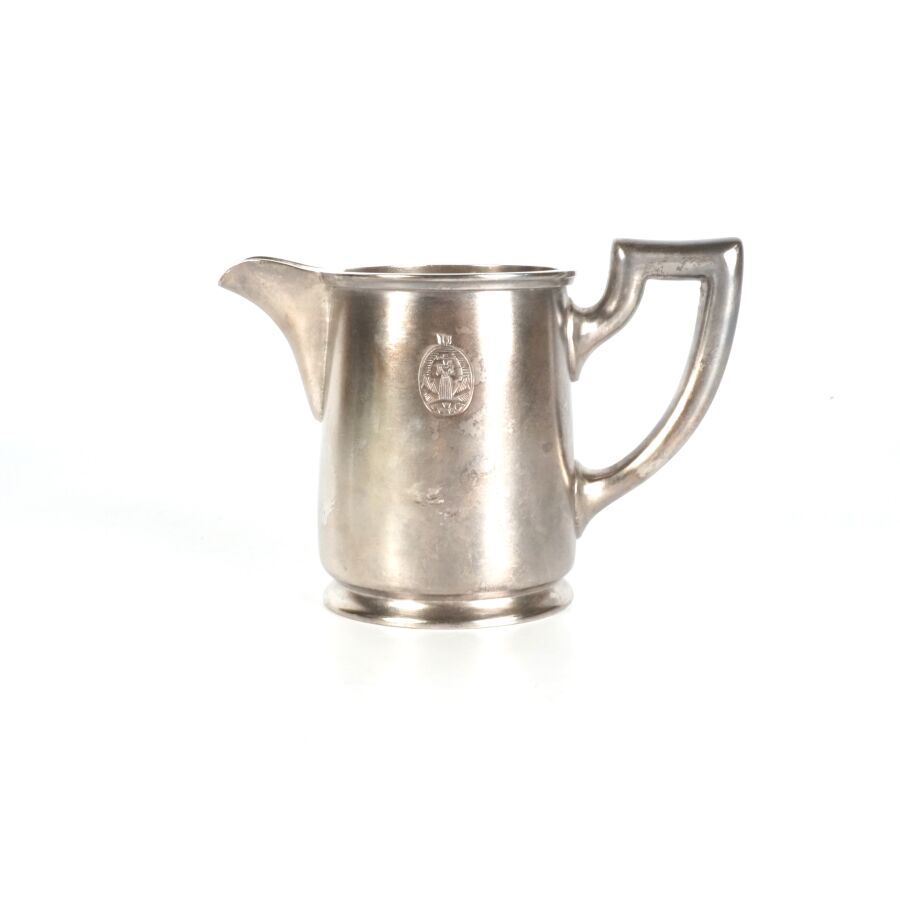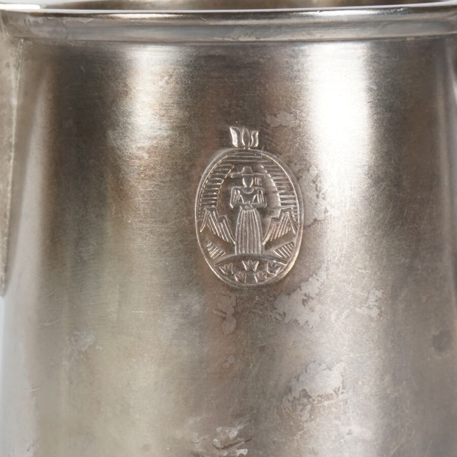 ALLEMAGNE - 1933-1945 - HOTEL PLATTERHOF - BERCHTESGADEN OBERSALZBERG - POT A LAIT, en métal argenté, sigle de l'hôtel (jeune bavaroise en costume devant des montagnes dans un médaillon ovale), marquée du nom du fabricant " GEBR. HEPP 90 ", hauteur : 8 cm, ETAT D'USAGE.
