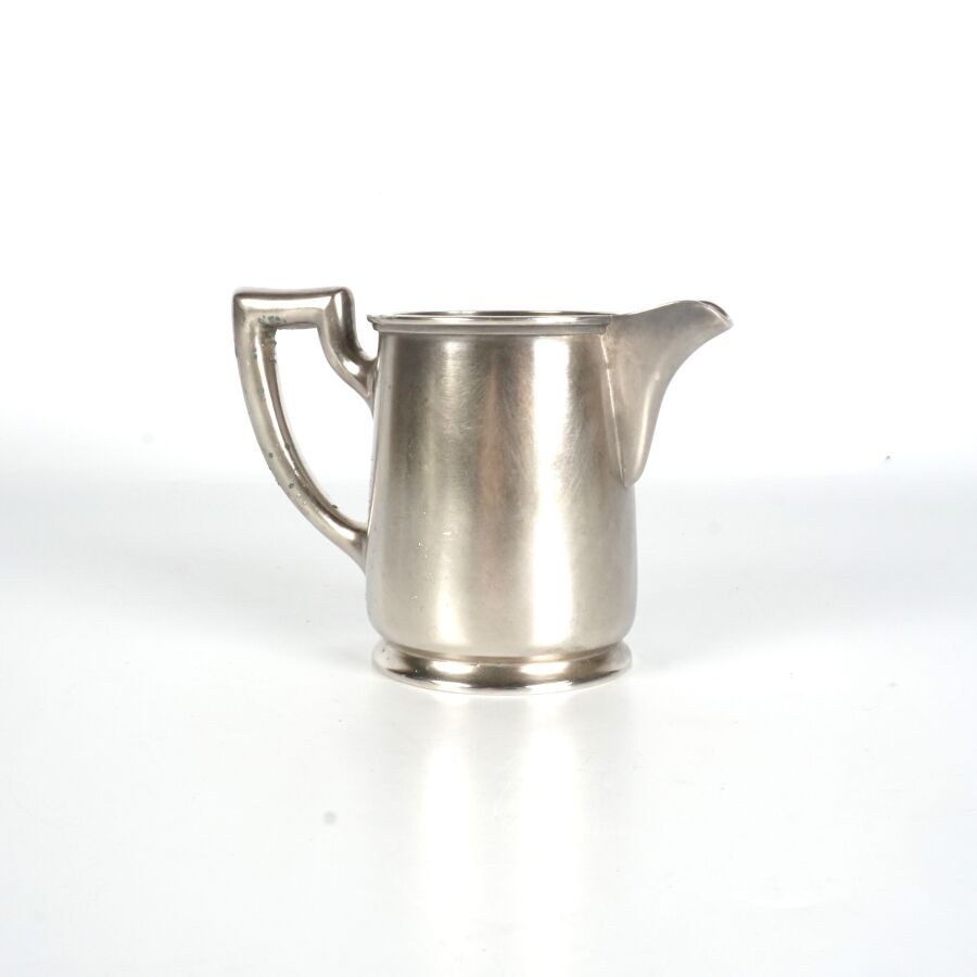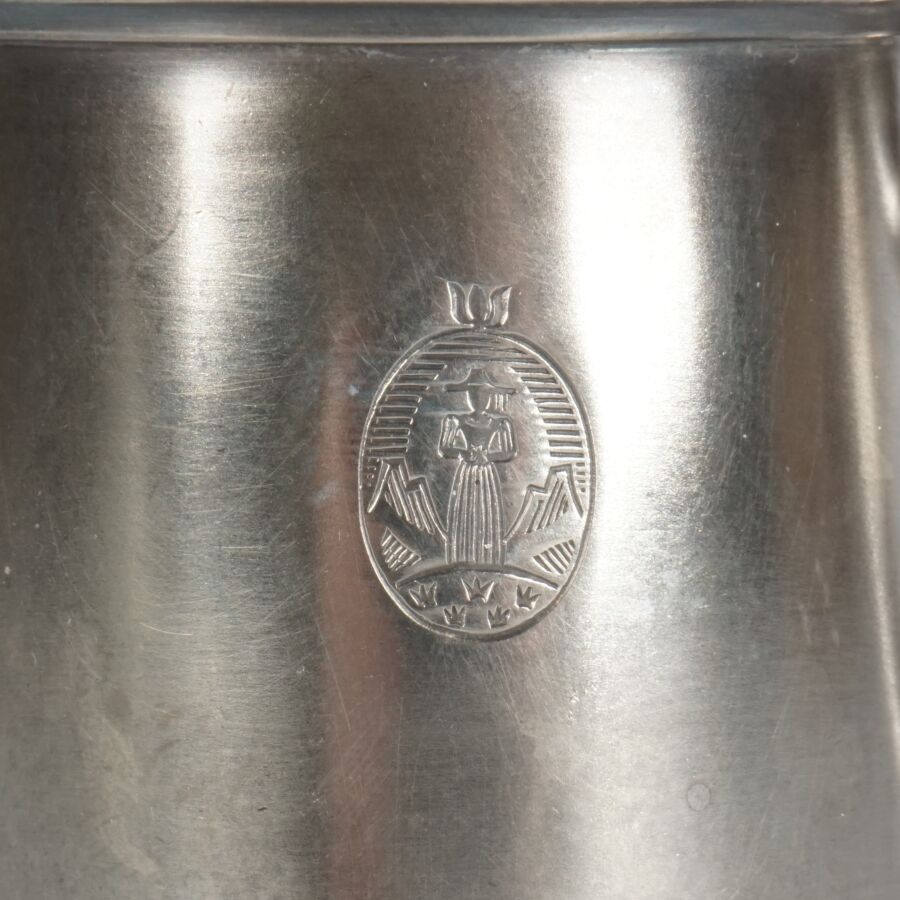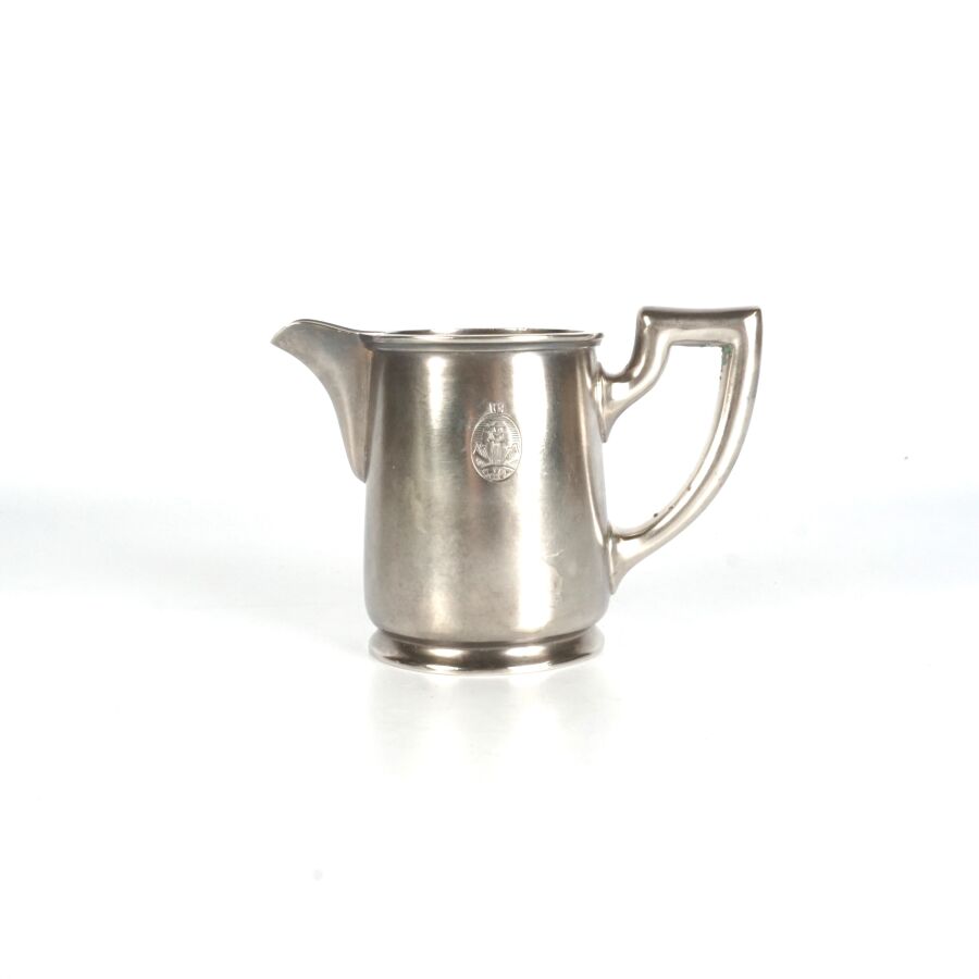 ALLEMAGNE - 1933-1945 - HOTEL PLATTERHOF - BERCHTESGADEN OBERSALZBERG - POT A LAIT, en métal argenté, sigle de l'hôtel (jeune bavaroise en costume devant des montagnes dans un médaillon ovale), marquée du nom du fabricant " GEBR. HEPP 90 ", hauteur : 8 cm, ETAT D'USAGE.
