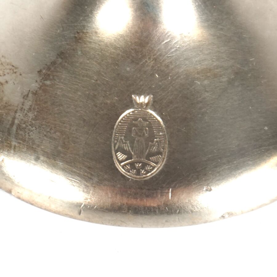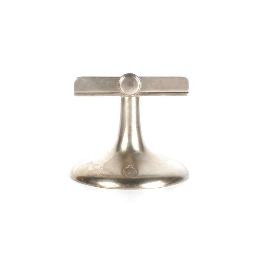 ALLEMAGNE - 1933-1945 - HOTEL PLATTERHOF - BERCHTESGADEN OBERSALZBERG - PORTE-MENU, en métal argenté, sigle de l'hôtel (jeune bavaroise en costume devant des montagnes dans un médaillon ovale), marquée du nom du fabricant " GEBR. HEPP 90 ", hauteur : 6,5 cm, ETAT D'USAGE.