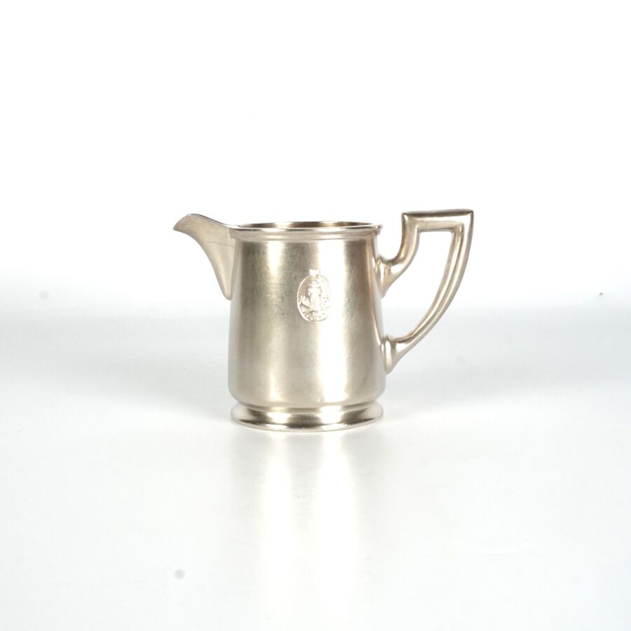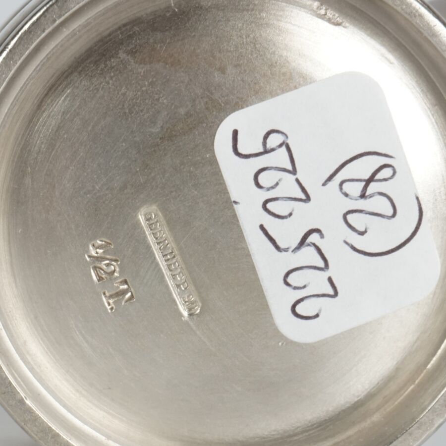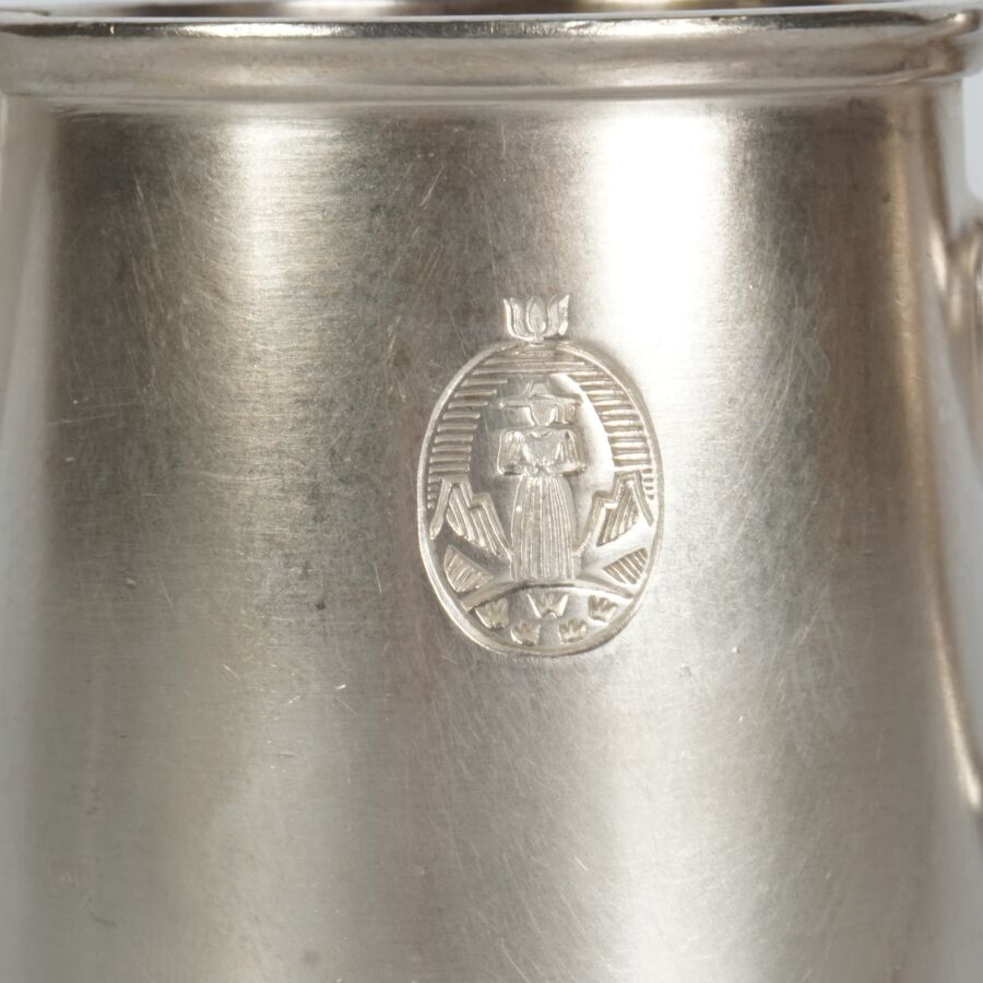 ALLEMAGNE - 1933-1945 - HOTEL PLATTERHOF - BERCHTESGADEN OBERSALZBERG - CREMIER, en métal argenté, sigle de l'hôtel (jeune bavaroise en costume devant des montagnes dans un médaillon ovale), marquée du nom du fabricant " GEBR. HEPP 90 ", hauteur : 7 cm, ETAT D'USAGE.