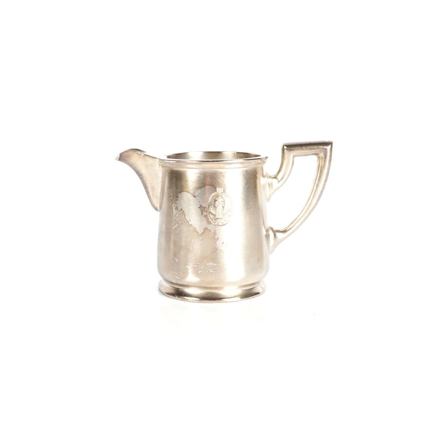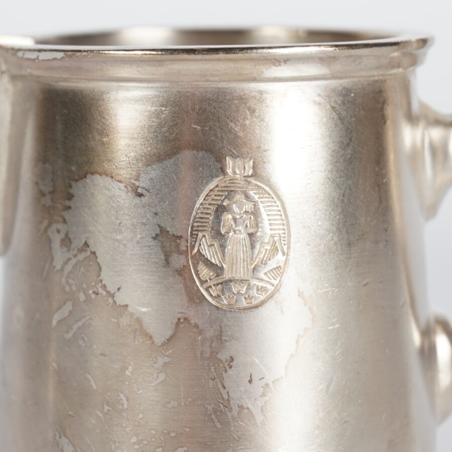 ALLEMAGNE - 1933-1945 - HOTEL PLATTERHOF - BERCHTESGADEN OBERSALZBERG - CREMIER, en métal argenté, sigle de l'hôtel (jeune bavaroise en costume devant des montagnes dans un médaillon ovale), marquée du nom du fabricant " GEBR. HEPP 90 ", hauteur : 7 cm, ETAT D'USAGE.