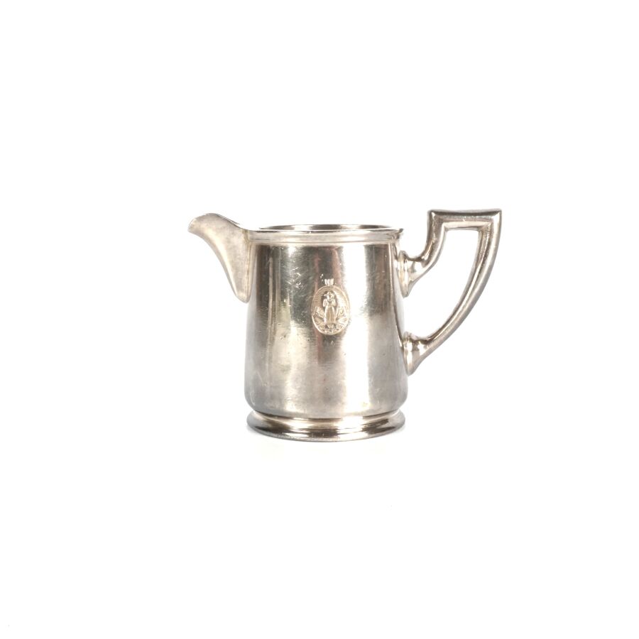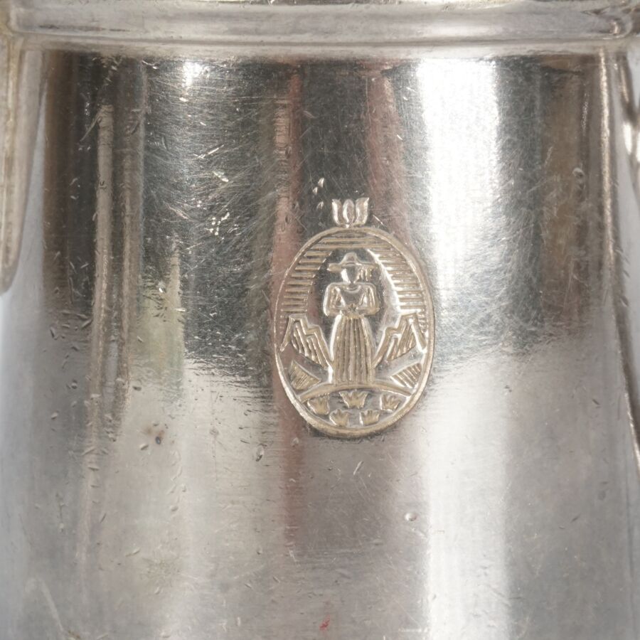 ALLEMAGNE - 1933-1945 - HOTEL PLATTERHOF - BERCHTESGADEN OBERSALZBERG - CREMIER, en métal argenté, sigle de l'hôtel (jeune bavaroise en costume devant des montagnes dans un médaillon ovale), marquée du nom du fabricant " GEBR. HEPP 90 ", hauteur : 7 cm, ETAT D'USAGE.