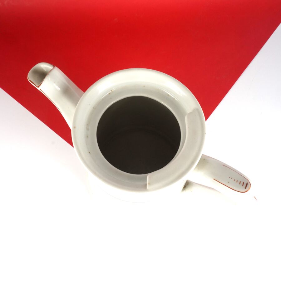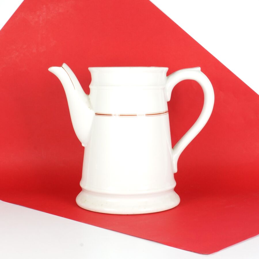 ALLEMAGNE 1933-1945 - KROEGSMARINE - CAFETIERE COLLECTIVE, en porcelaine blanche à 3 liserés rouges, marquée en dessous en noir du "M", de l'aigle, logo et nom du fabricant " KPM" sous couronne, année "1941", manque le couvercle, hauteur : 22 cm, BE.