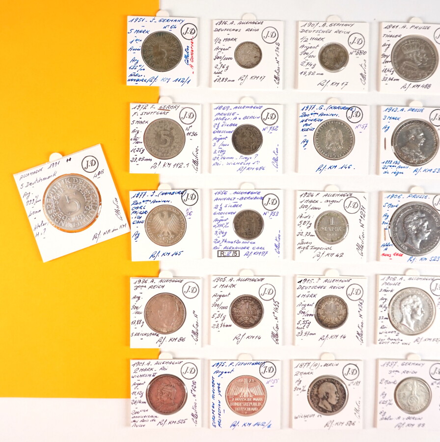 ALLEMAGNE : Ensemble de 31 monnaies en argent comprenant :