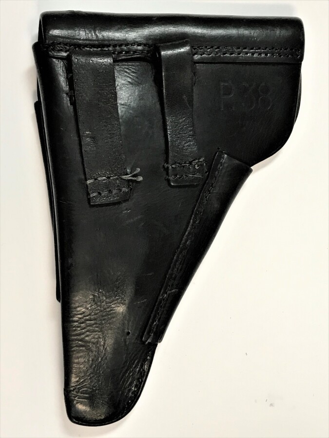 ALLEMAGNE - ETUI POUR PISTOLET P38, en cuir noir, marqué " P38 " au dos, Seconde Guerre Mondiale, BE.