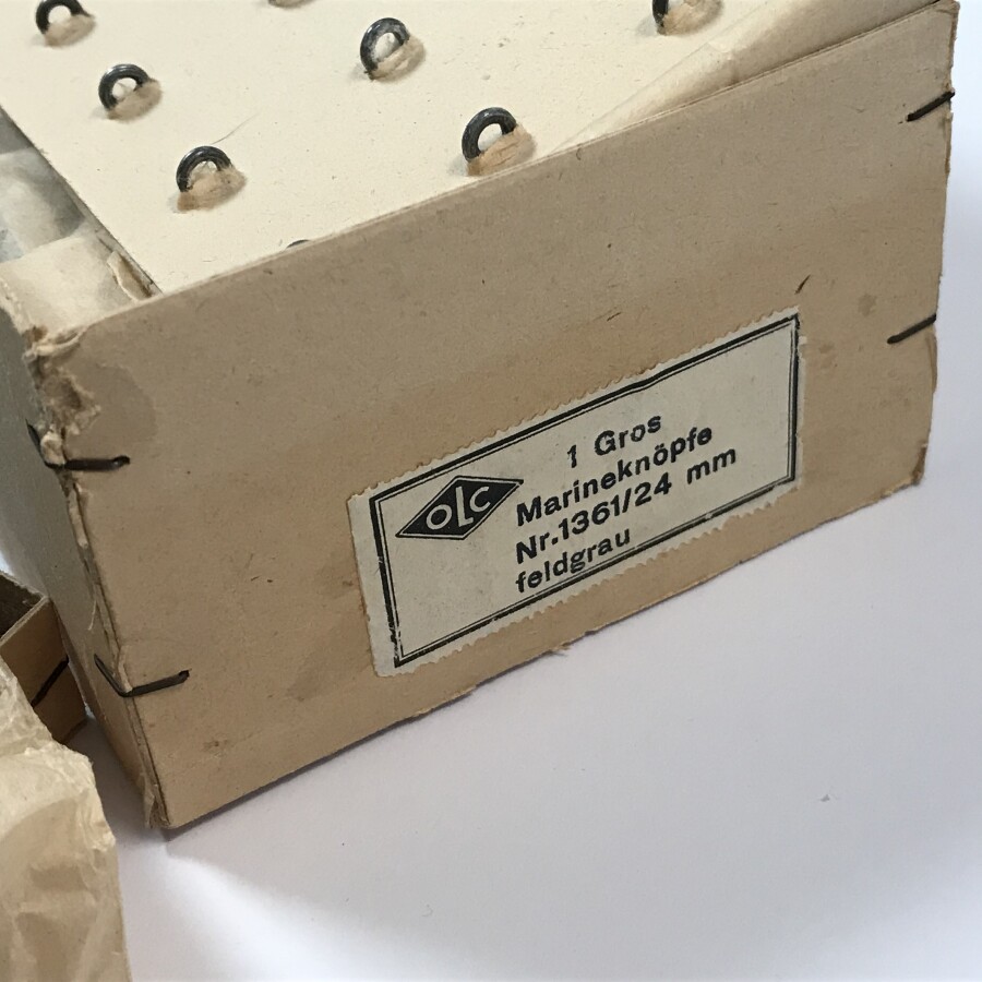 ALLEMAGNE - KRIEGSMARINE - BOITE DE 144 BOUTONS A L'ANCRE, peints en gris, 24 mm de diamètre, dans une boite en carton, Seconde Guerre Mondiale, NEUF DE STOCK.