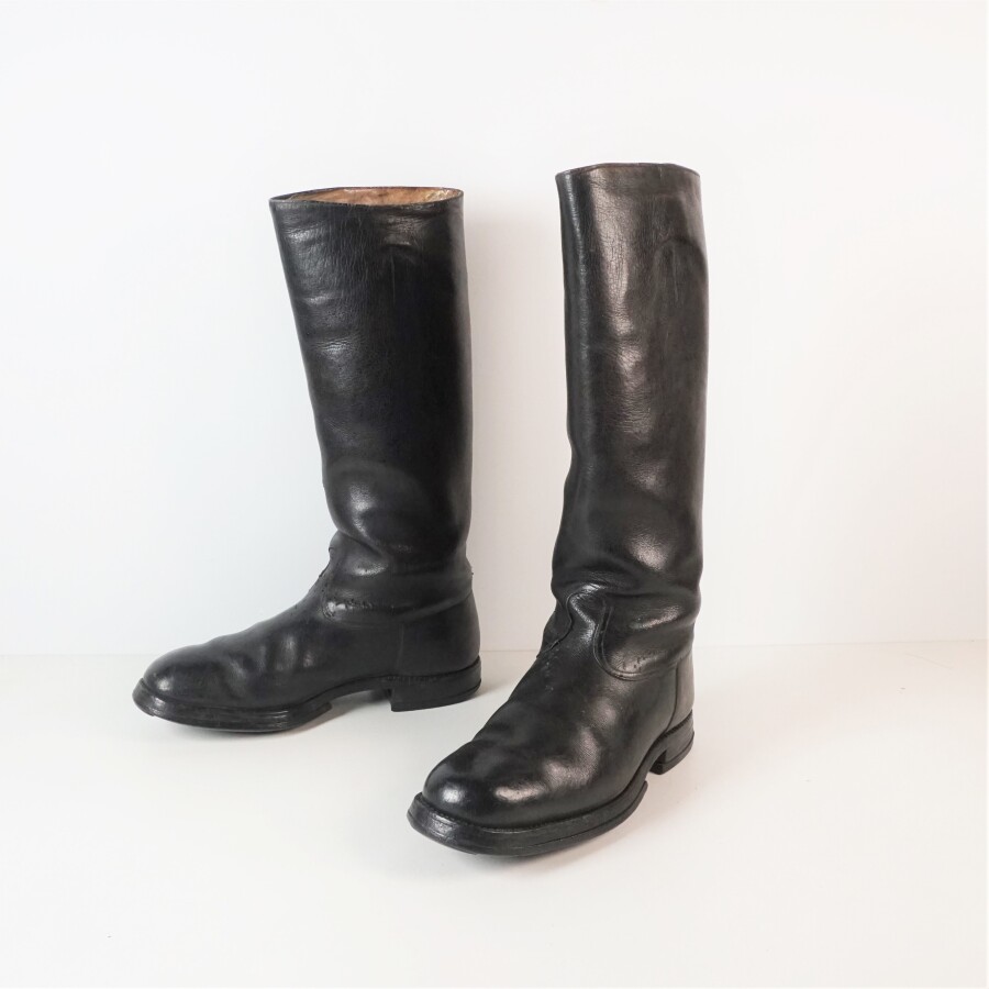 ALLEMAGNE - PAIRE DE BOTTES HAUTES, en cuir noir, ressemelées, seconde Guerre Mondiale, ETAT D'USAGE.