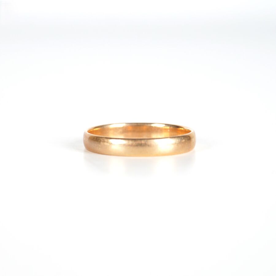 Alliance en or jaune 18K (750/oo), TDD. 56. Larg. 3 mm. Poids brut : 2.2 g environ.